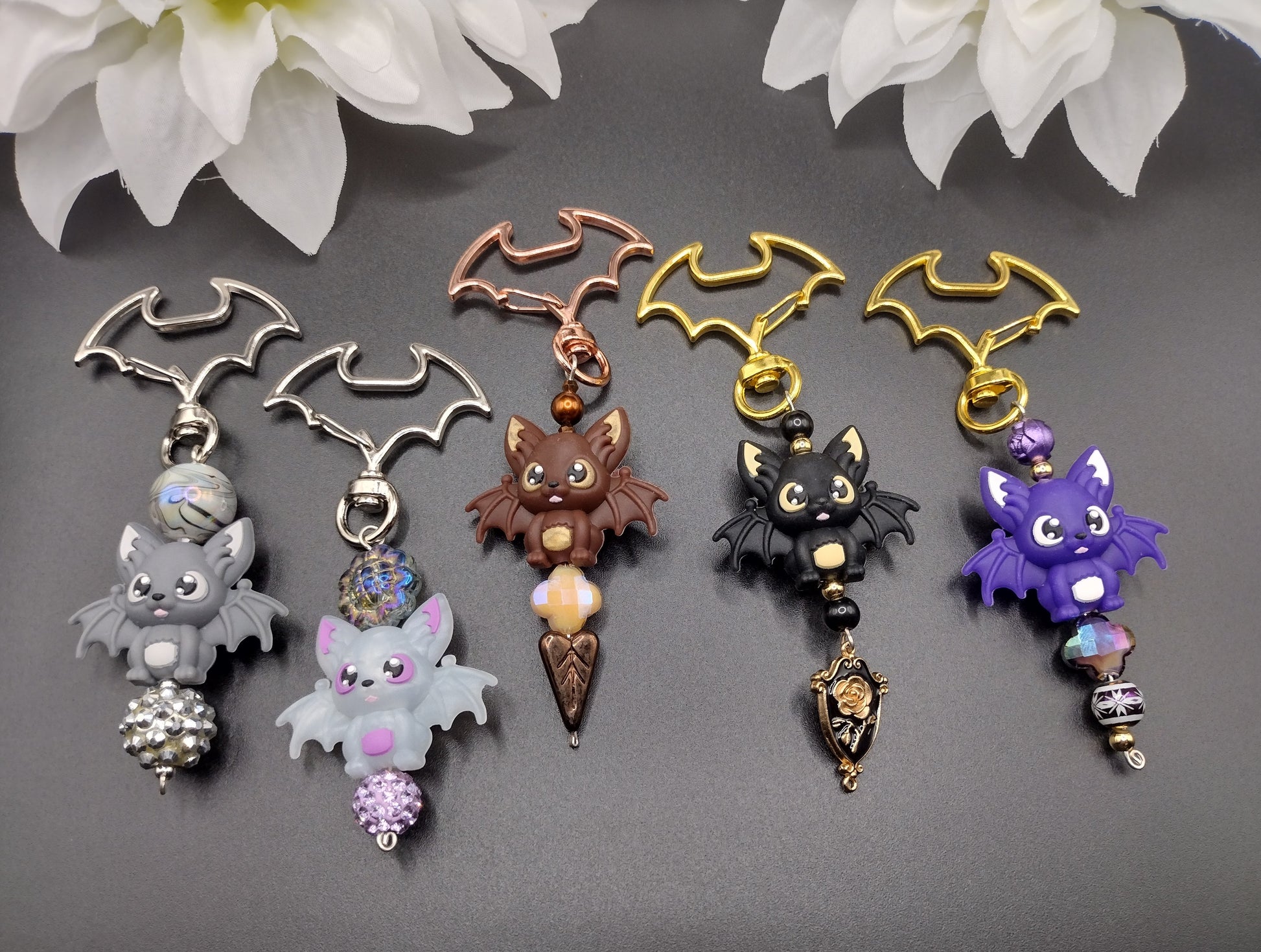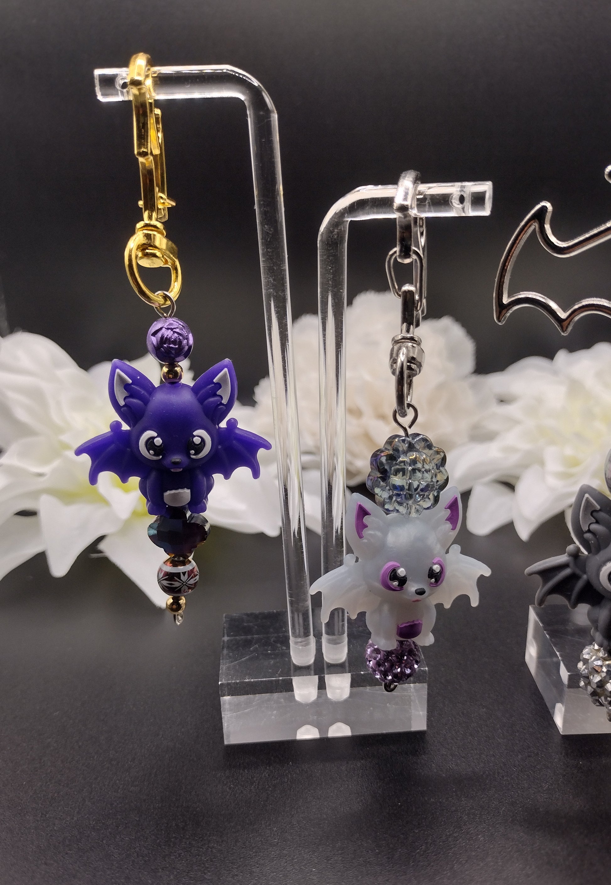 UPDATE: The black bat charms have been updated with a darker bat keyring to match the bat better. Also, increase in black and purple bat charm quantity.