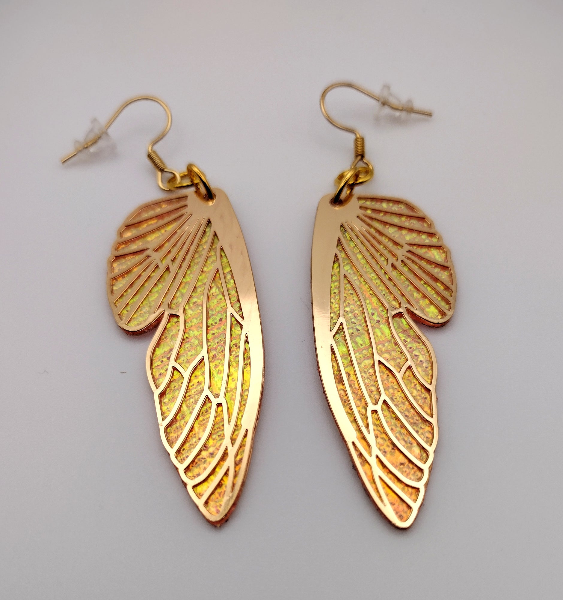 Add a touch of elegance to your outfit with our Butterfly Wing Earrings. The double-sided design and dichroic rainbow texture film create a beautiful translucent effect, reminiscent of real butterfly wings. Perfect for any occasion.
