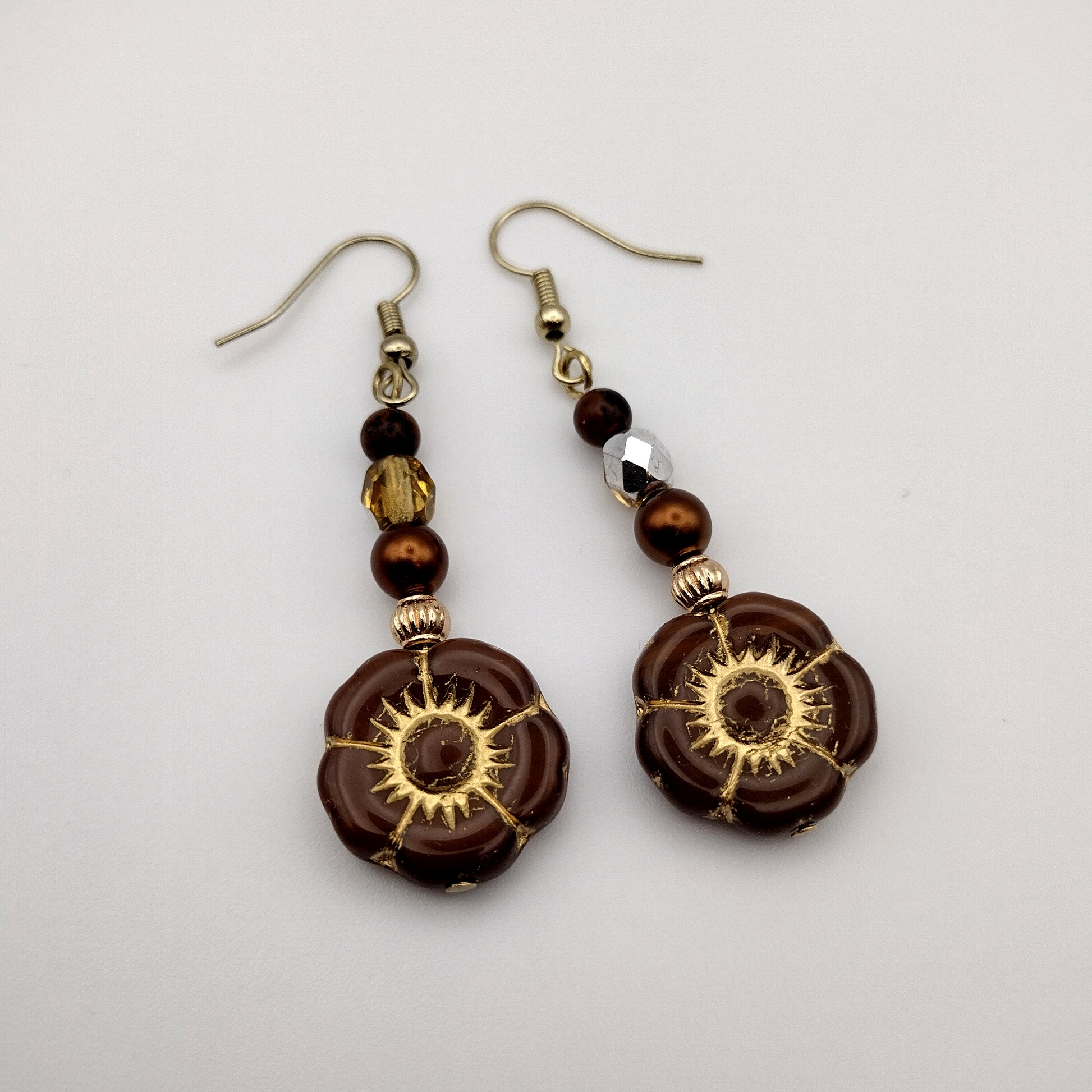Soft cocoa tones meet floral charm in these lightweight earrings featuring shiny beads and blooming details. A warm, nature-inspired accessory perfect for everyday elegance.