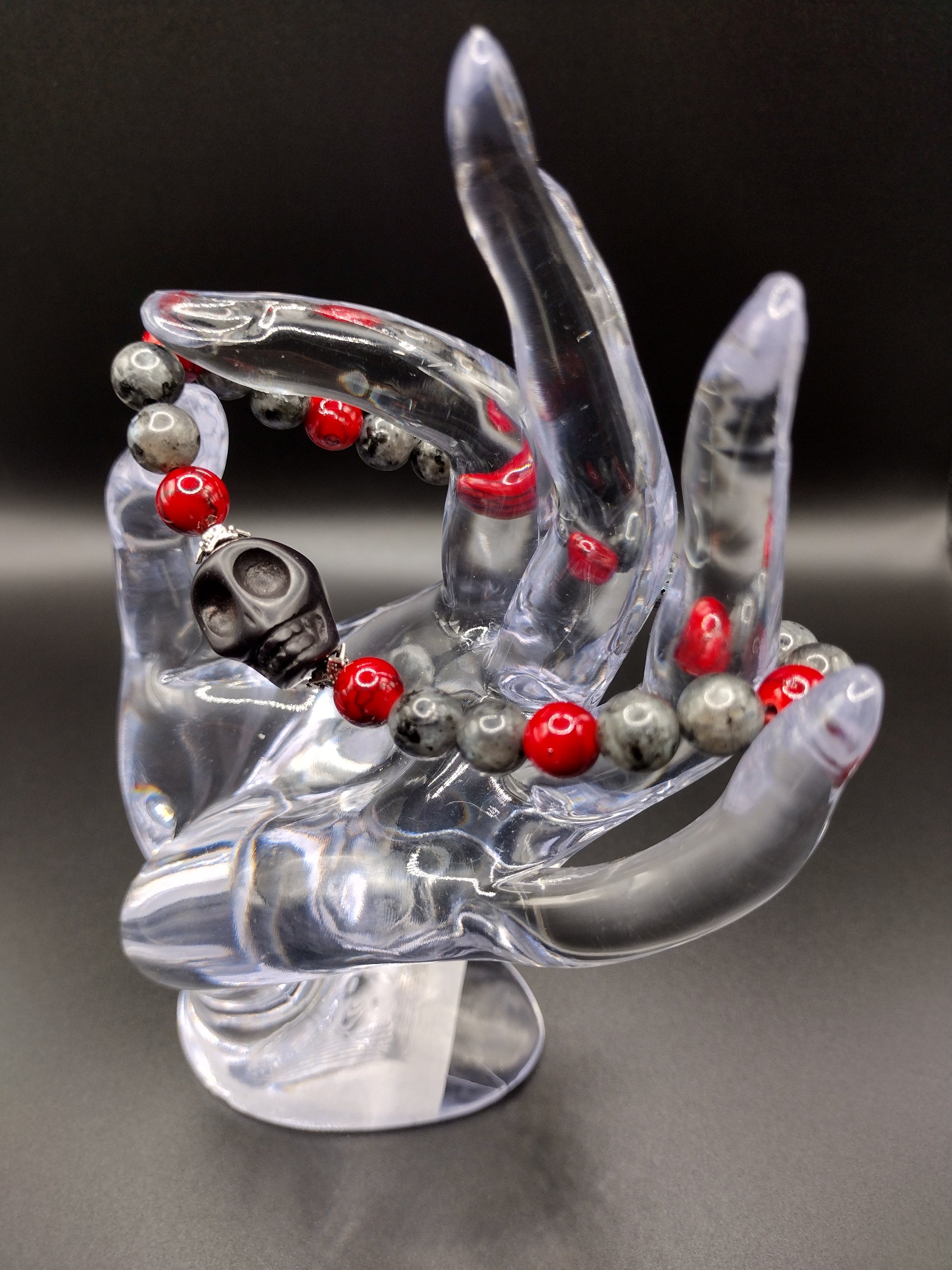 Ignite your style with the Darkfire Collection — a bold fusion of gemstones, gothic aesthetics, and fiery contrasts. Each bracelet is handcrafted to capture the essence of rebellion and strength, featuring striking red accents, grounding grays and blacks, and daring skull or geometric designs.