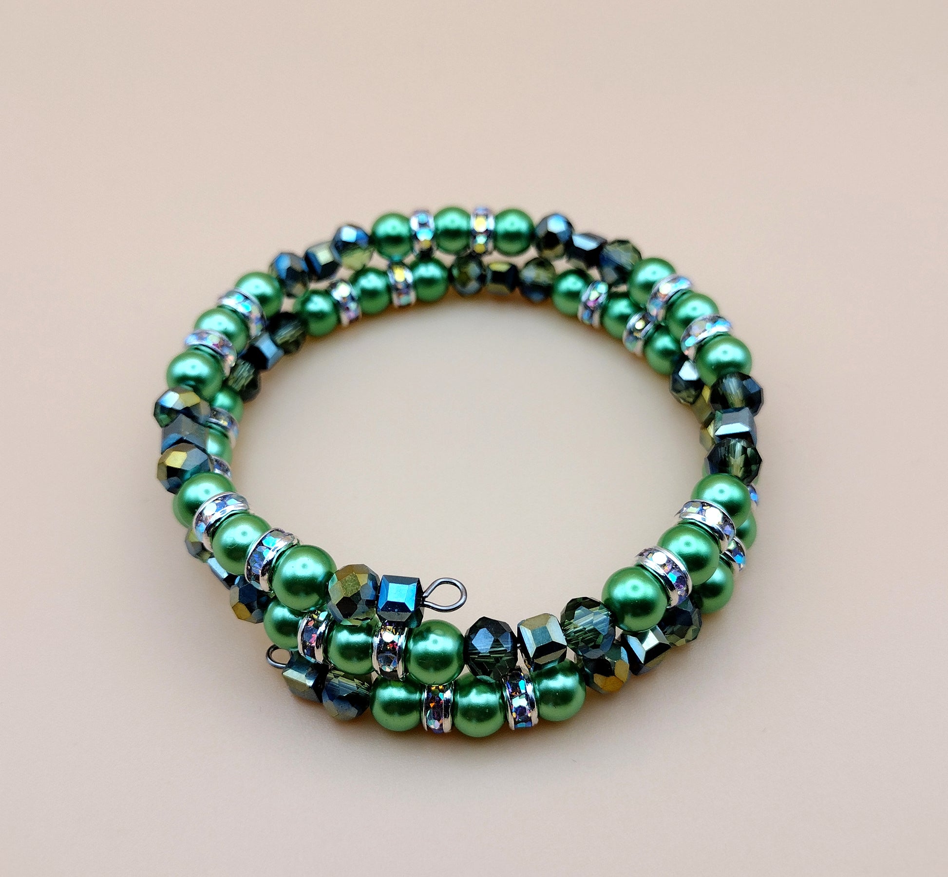 - Key Lime features vibrant green glass pearls, green cubes, green faceted beads, & clear rondelles.