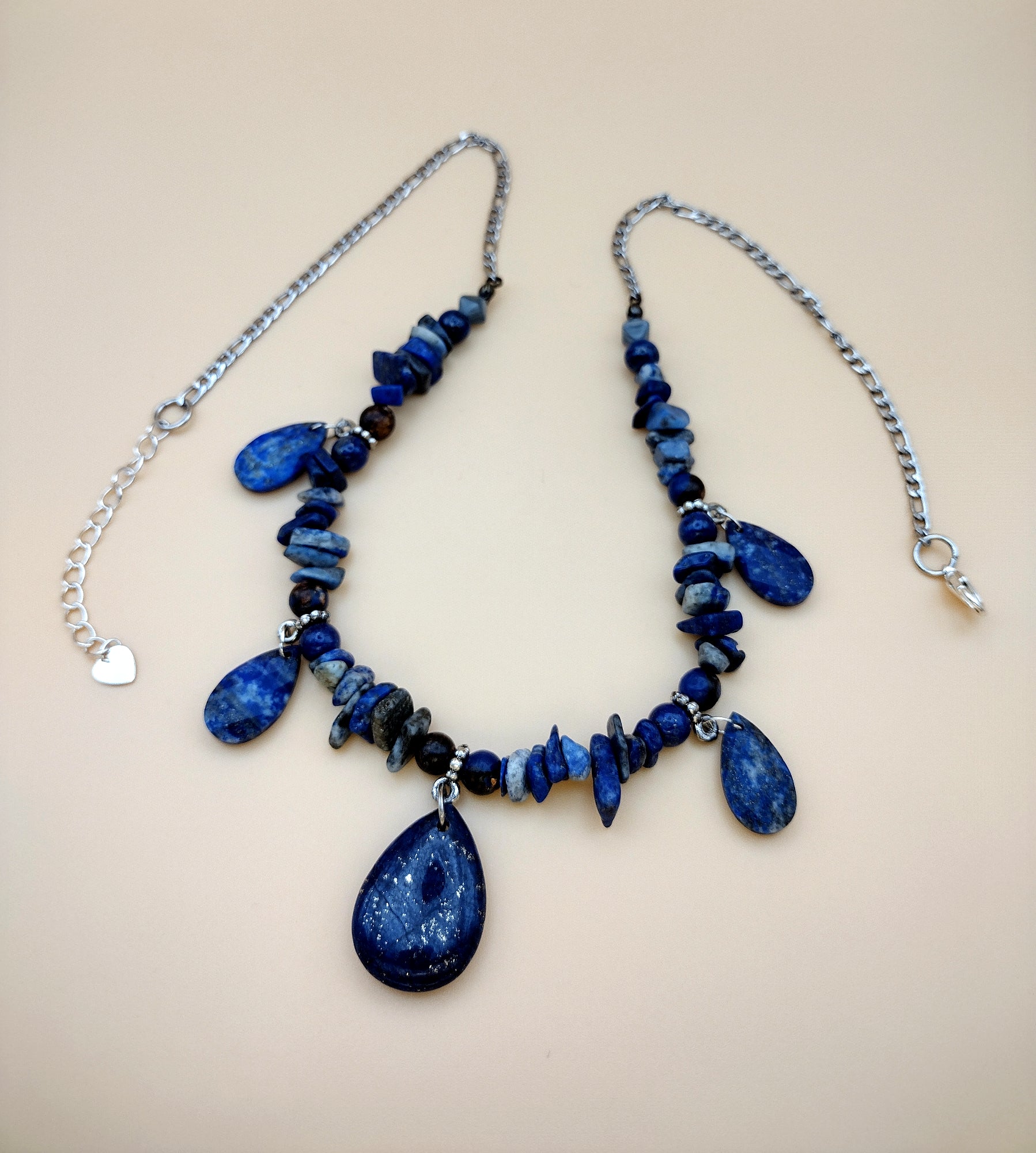Whether you're drawn to deep ocean blues or the timeless beauty of natural stones, Midnight Tides brings elegance to every outfit. Handmade with vibrant lapis lazuli chip beads, this necklace adds a bold yet effortless accent — perfect for layering or wearing solo. Appreciated for both its rich color and long-standing symbolism, lapis is a favorite among gemstone lovers of all kinds.