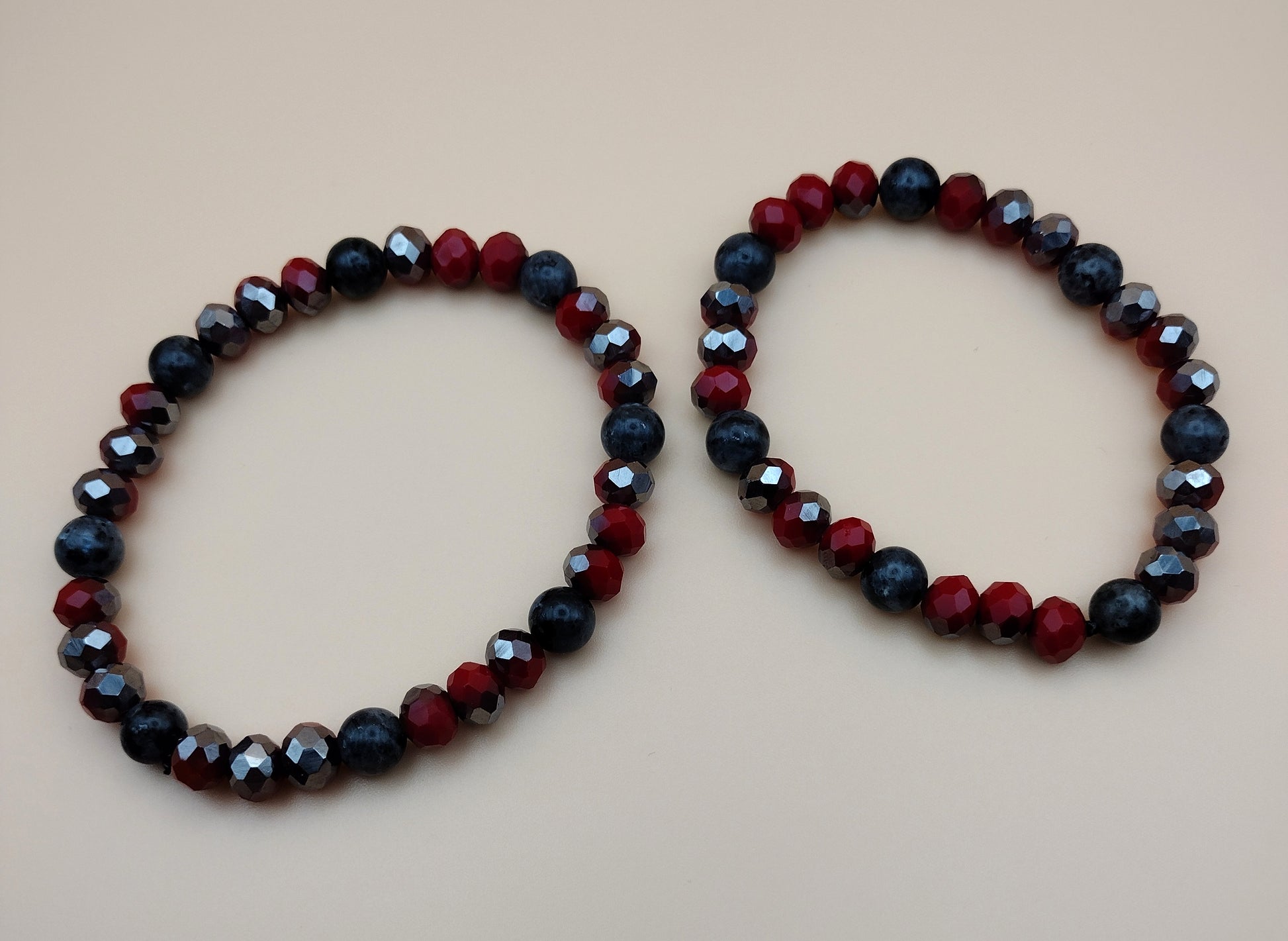 Reflekt: Fire channels bold energy and inner strength — a piece made for those who move with intention and burn with purpose. Features black labradorite stones for grounding and quiet power, anchoring the fire with depth and protection along with red/silver faceted beads.