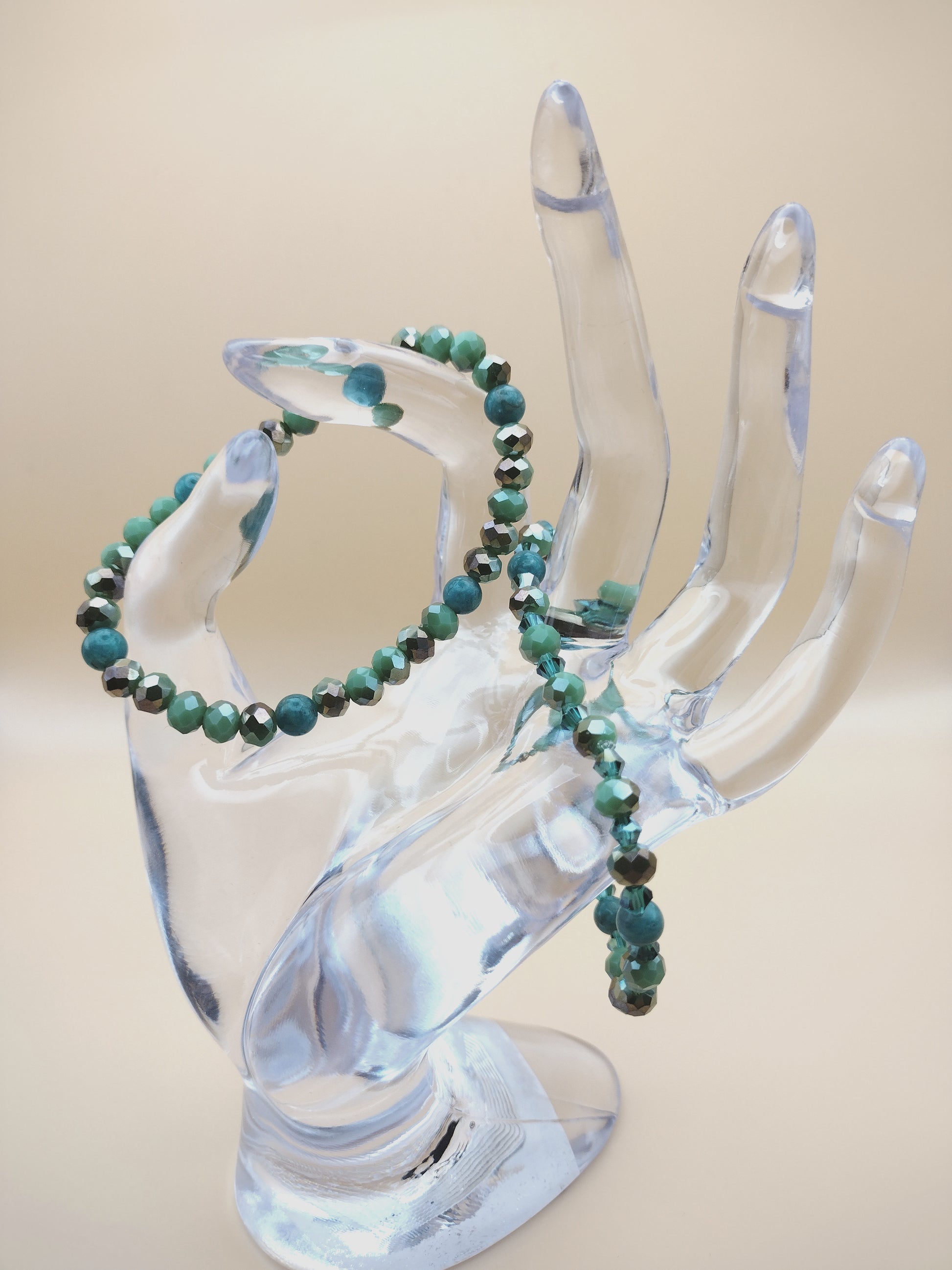 Reflekt: Forest channels deep calm, natural rhythm, and quiet renewal. It’s a piece for those who feel most alive when rooted in nature — or those seeking that feeling, wherever they are. Features soothing and earthy Russian Amazonite, believed to encourage truth, harmony, and heart-centered balance along with green/silver faceted beads.