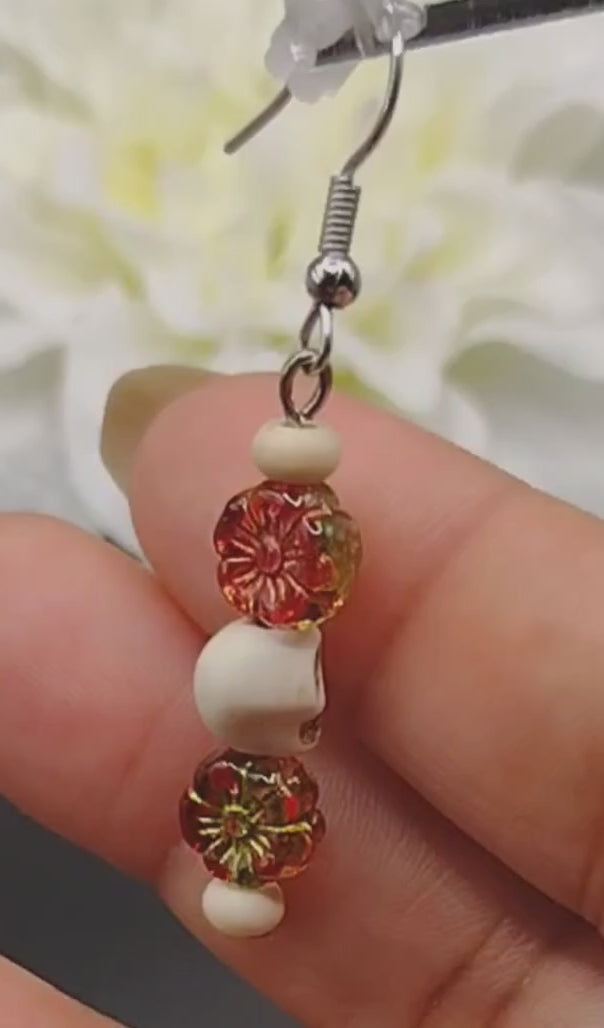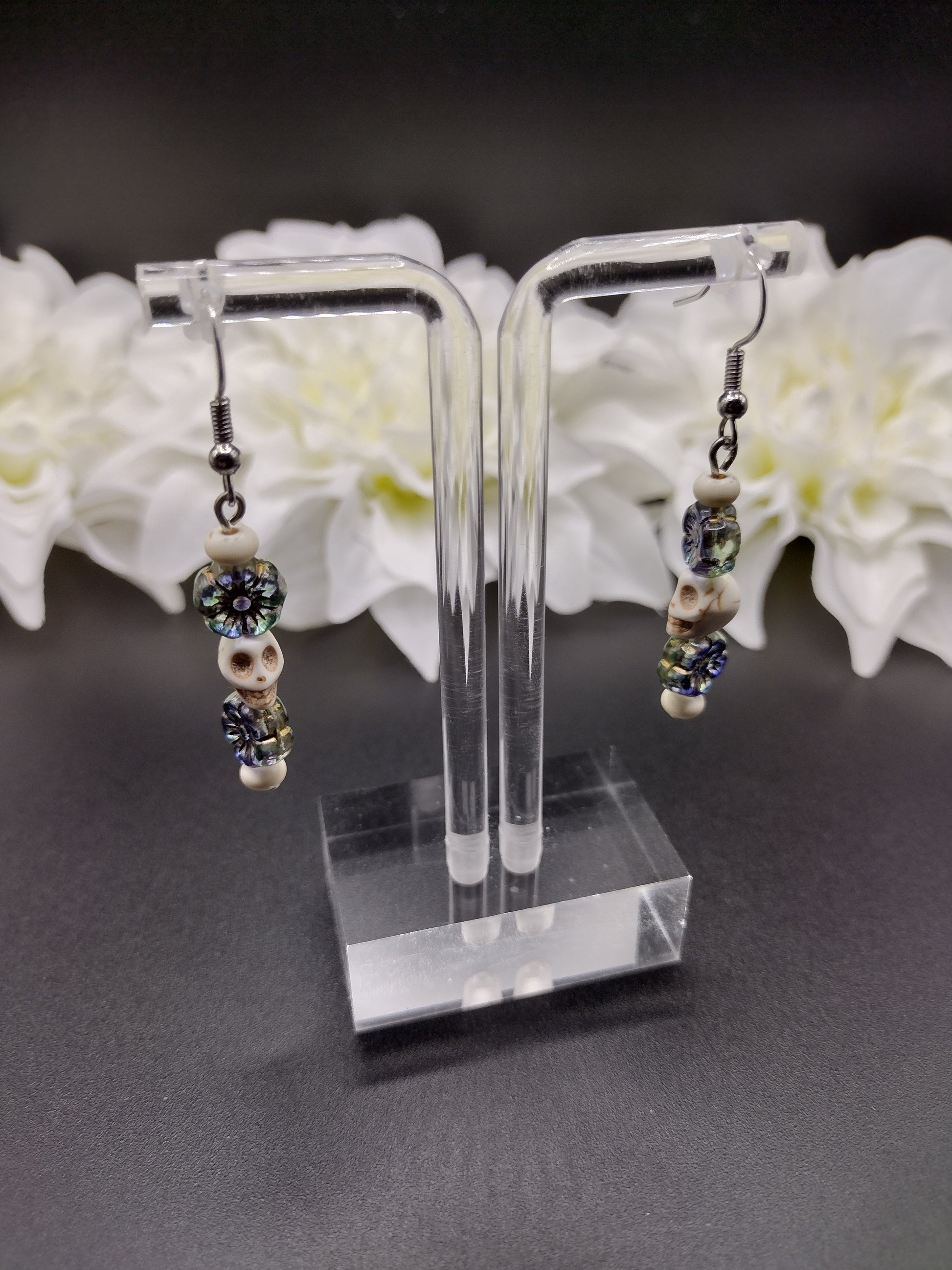 Embrace the spirit of spooky season with these lovely Skull & Blossom Earrings. Featuring mini dangling skulls surrounded by striking colorful flowers or alone for a bold statement, they add an edge to any look. Perfect for those who dare to stand out or just wanna have a bit of fun.