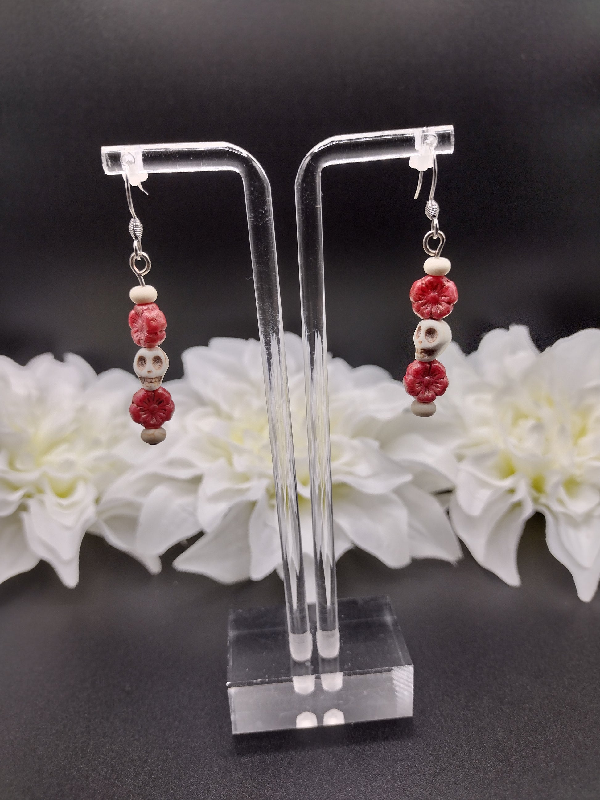 Approximate length of the earrings without the flowers is 1 1/4 inch. The flower and skull earrings are approximately 2 inches long.